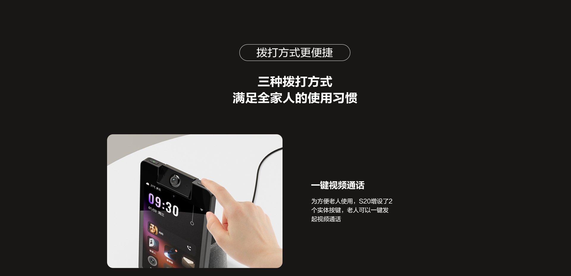 | 呼叫发起方式 | 触摸呼叫/语音呼叫/按键呼叫 | |