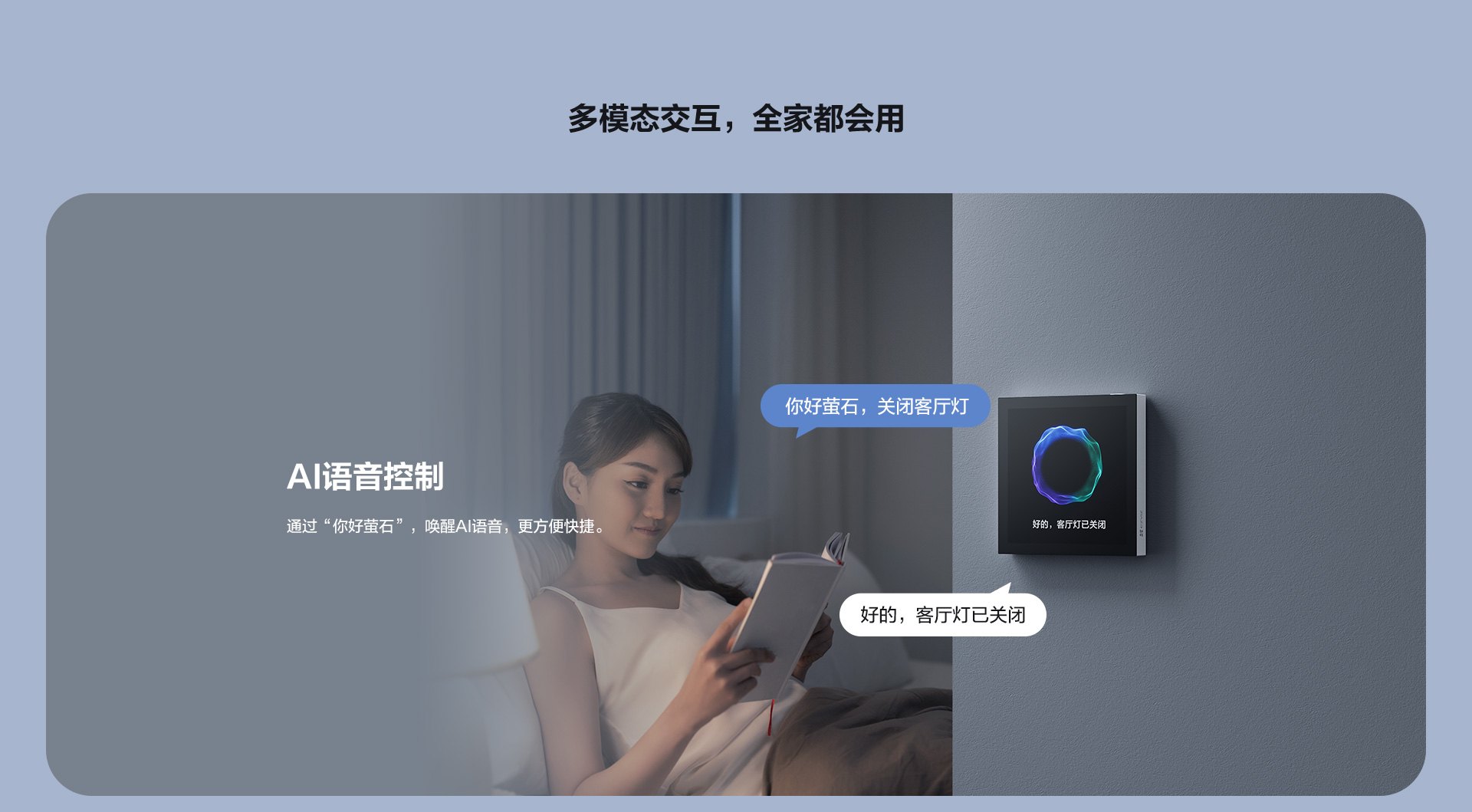 | AI语音 | 唤醒词为你好萤石,通过语音控制当前家庭的设备及各种生活技能 | |